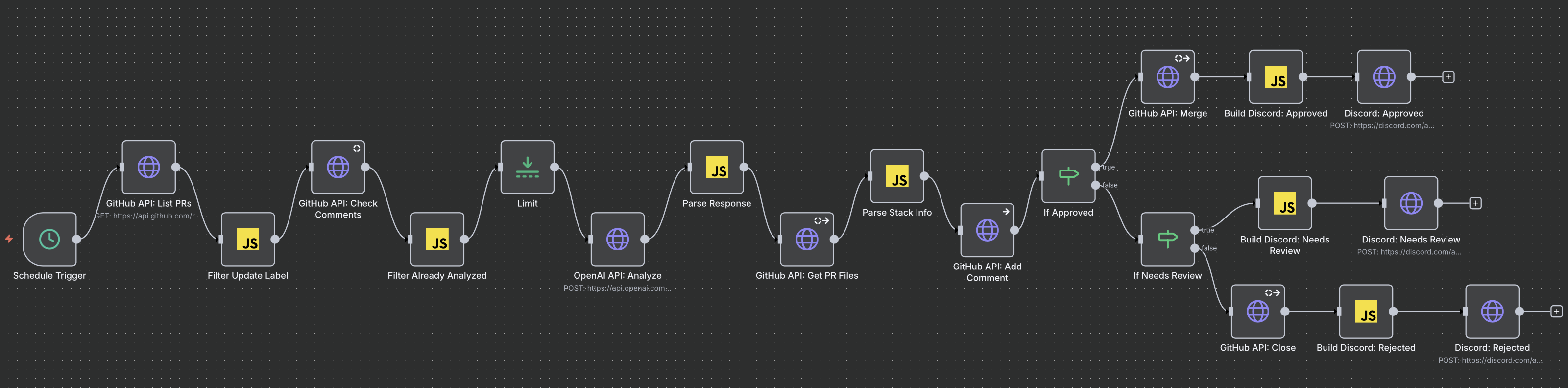 I built an automation based on that video that uses Renovate Bot to detect updates, n8n to orchestrate the workflow, and OpenAI’s GPT-4o-mini to assess risk. Safe updates merge automatically. Risky ones get flagged for review. The entire system costs $1-2 per month.